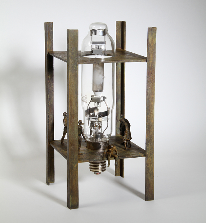 "LE FANAL" - bronze + lampe- 19 x 19 x 38 cm - Pièce unique